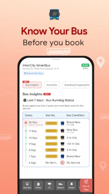 अभीबस आपकी यात्रा की हर चिंता को दूर करने के लिए प्रतिबद्ध है। वोल्वो, एसी, स्लीपर, दिन या रात्रि की बसों सहित, हर प्रकार की बस सेवा में सीट आरक्षित करें, चाहे आप किसी भी राज्य में हों। एमएसआरटीसी सहित कई सरकारी बस सेवाओं का आधिकारिक भागीदार होने के नाते, अभीबस आपको न केवल सबसे तेज़ बुकिंग की सुविधा देता है, बल्कि लाइव बस ट्रैकिंग, सुनिश्चित समयबद्धता ('अभी एश्योर्ड' सेवाओं के माध्यम से), और अद्वितीय सुरक्षा सुविधाओं का लाभ भी प्रदान करता है।