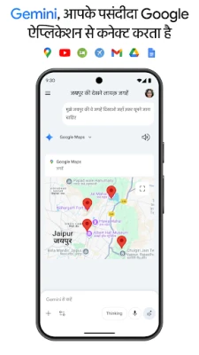 Gemini आपके पसंदीदा Google ऐप्स जैसे Search, YouTube, Google Maps और Gmail से सहजता से जुड़कर आपके अनुभव को समृद्ध करता है। क्विज़, फ़्लैशकार्ड, इंटरैक्टिव विजुअल और अपने आस-पास के उदाहरणों की मदद से, किसी भी विषय को स्मार्ट तरीके से सीखें और गहन जानकारी प्राप्त करें। किसी भी फ़ाइल को पॉडकास्ट में बदलें और उसे अपनी सुविधानुसार सुनें। बस कुछ शब्दों के प्रॉम्प्ट से शानदार इमेज बनाएं या संपादित करें। अपनी यात्रा की योजना त्वरित और कुशलता से बनाएं, और किसी भी विषय पर विस्तृत जानकारी, विभिन्न दृष्टिकोणों और विश्वसनीय स्रोत लिंक एक ही स्थान पर पाएं। यह नए विचारों को खोजने और मौजूदा विचारों को परिष्कृत करने का आपका वन-स्टॉप समाधान है।