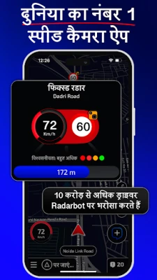 स्पीड कैमरों का डर अब अतीत की बात है। Radarbot आपको फिक्स्ड, संभावित मोबाइल, टनल, औसत गति और ट्रैफिक लाइट कैमरों सहित सभी प्रकार के स्पीड कैमरों के बारे में स्पष्ट और समय पर अलर्ट भेजता है। इसके अतिरिक्त, यह खतरनाक ड्राइविंग क्षेत्रों, सीट बेल्ट या सेल फोन के उपयोग की जांच करने वाले कैमरों और प्रतिबंधित प्रवेश द्वारों जैसी विशिष्ट सड़क स्थितियों के बारे में भी सचेत करता है। दुनिया भर में 50 मिलियन से अधिक ड्राइवरों का एक सक्रिय समुदाय लगातार अपडेट साझा करता है, जिससे आपको ट्रैफिक जाम, खतरों, दुर्घटनाओं, पुलिस की मौजूदगी और अन्य अप्रत्याशित सड़क बाधाओं के बारे में तुरंत जानकारी मिलती है। हमारी विशेषज्ञ टीम डेटाबेस को दैनिक रूप से अपडेट करती है, यह सुनिश्चित करते हुए कि Radarbot की सतर्क नज़र से कोई भी स्पीड कैमरा न छूटे।